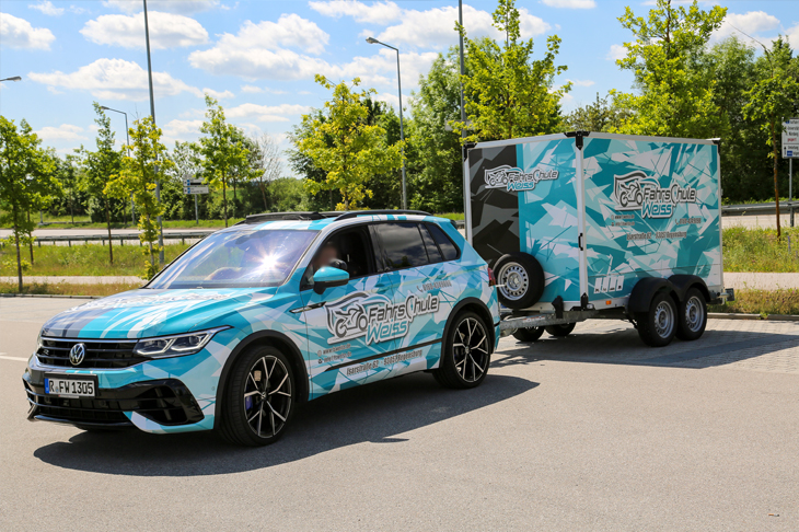 Fahrpraktische Prüfung mit Pkw und Anhänger im Prüfungsgebiet München
